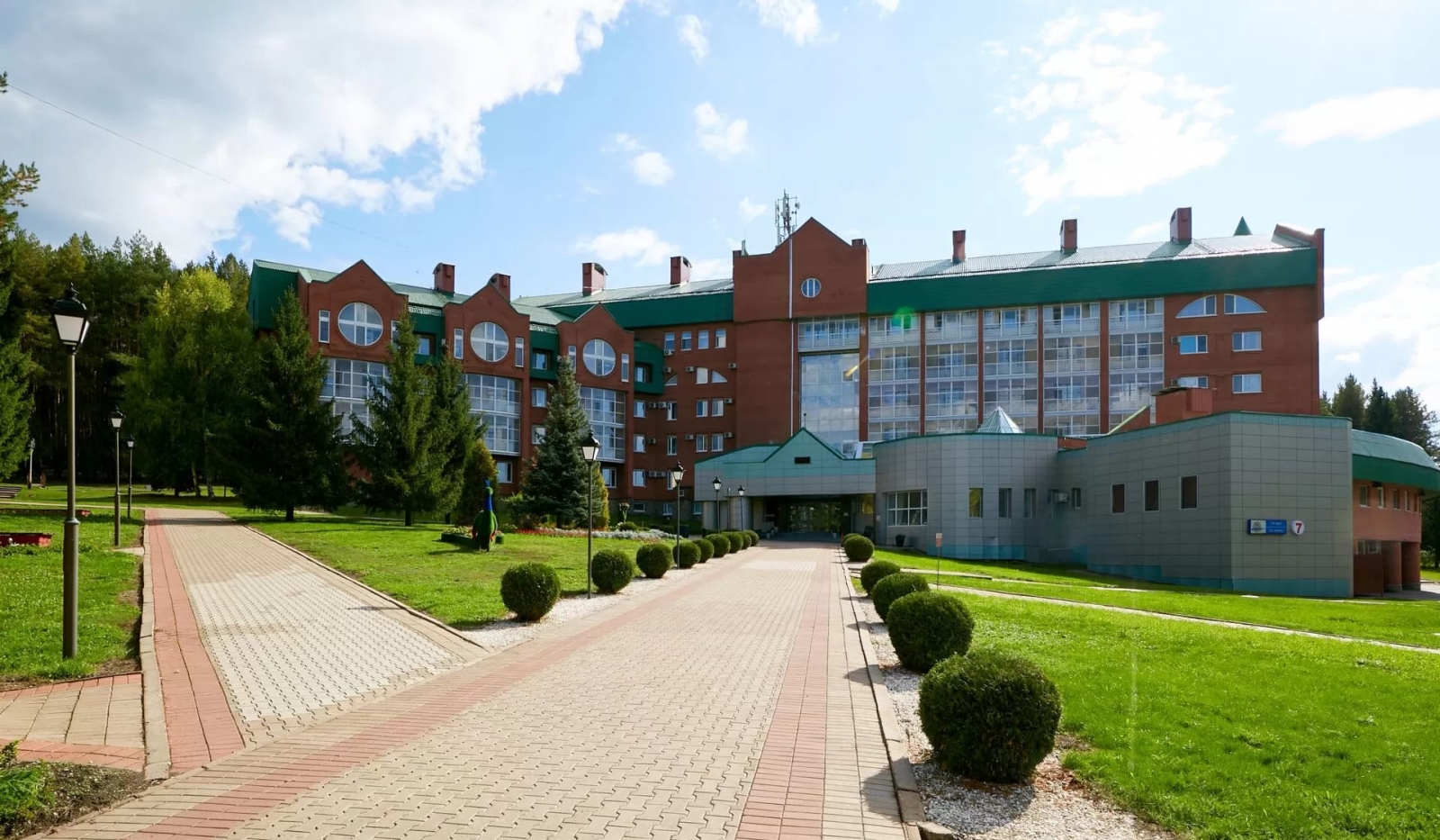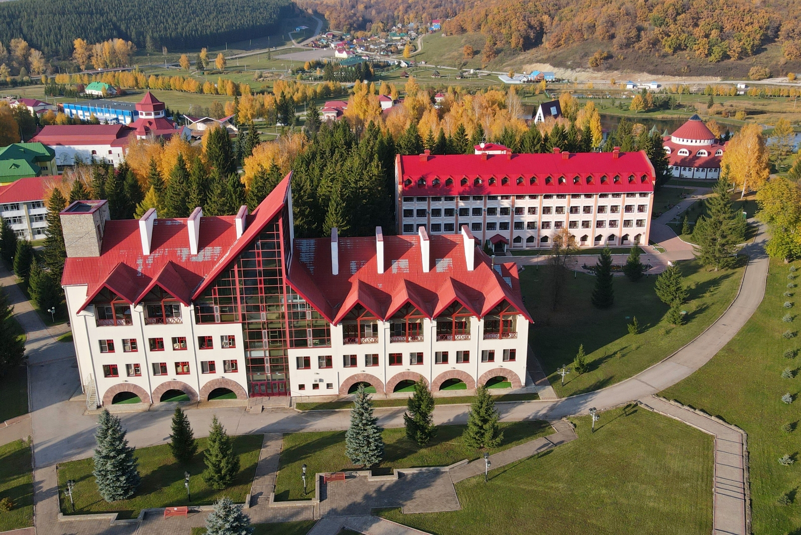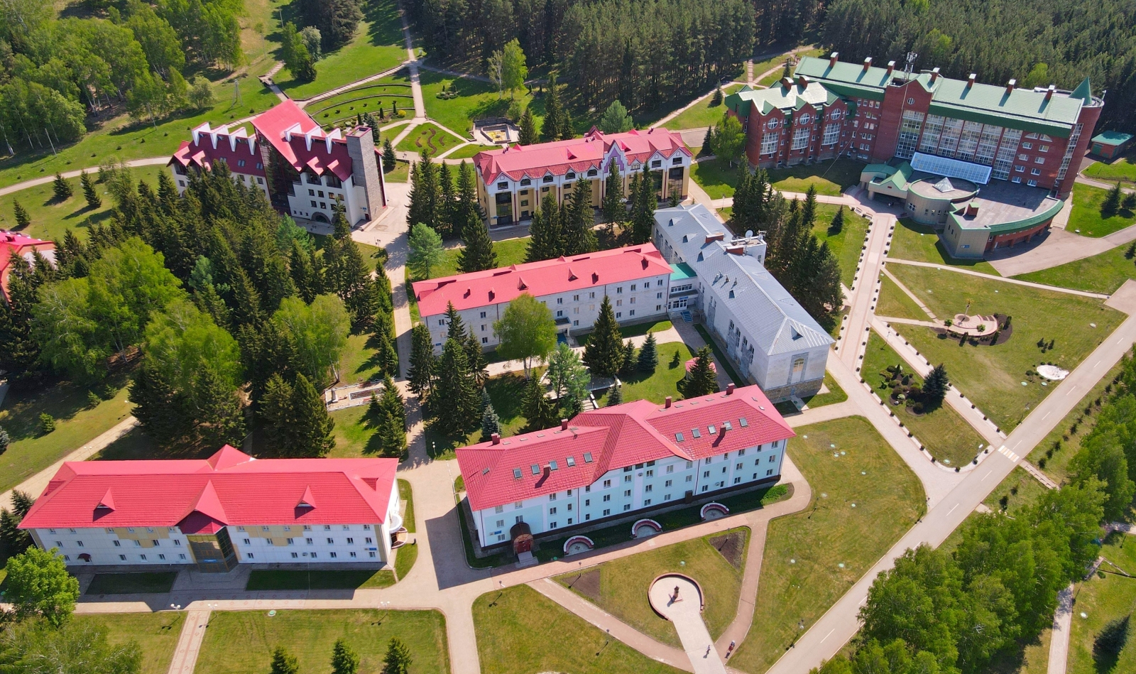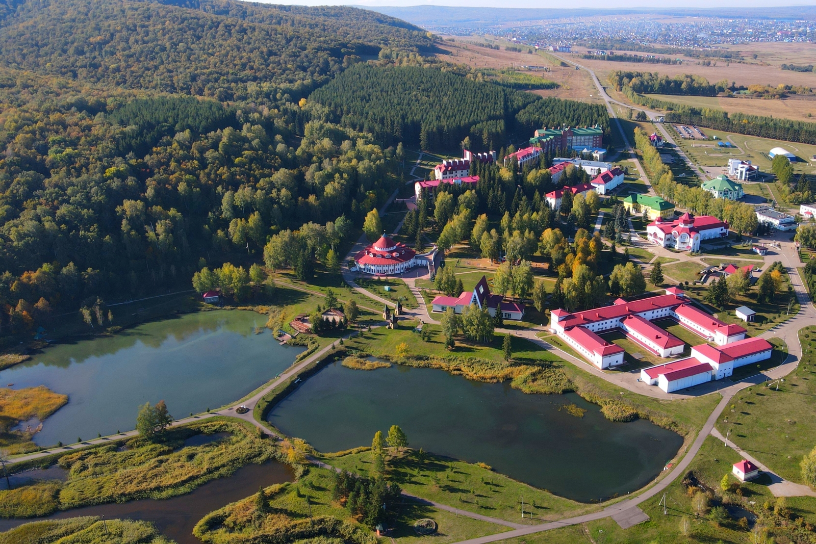 Санаторий «Красноусольск» расположен в Башкирии, в 130 км от г. Уфы. Это крупный курорт регионального значения, известный далеко за своими пределами. Редкое сочетание целебных природных факторов делают его уникальным. Санаторий находится почти в центре республики и имеет удобную транспортную развязку. До ближайшего крупного города – Стерлитамака – порядка 70 км. В 7 км находится село Красноусольский с необходимой поселковой инфраструктурой. Сам санаторий стоит в пос. Курорта. Здесь есть своя автостанция, магазины, аптека, мечеть и православный монастырь. Территория курорта составляет 110 га и представляет собой целый городок, способный обеспечить своим гостям полноценный комфортный отдых, досуг и лечение. Корпуса, разные по архитектуре, органично перемежаются с лесными массивами и открытым пространством, ровными газонами и цветочными клумбами, фонтаном и зонами отдыха. Живописный вид открывается на протекающую рядом р. Усолка, незамерзающую зимой из-за бьющих источников, и Утиное озеро. Для размещения предусмотрено 10 корпусов разной вместимости. Корпуса 1,4 – 4-этажные, 2,3 – 3-этажные, 5,6 – 5-этажные, 7ой – 6-этажный, 8,9 – 2-этажные и 10ый – 1-этажный. Все они являются отдельно стоящими, лишь корпус 3 соединен теплым переходом с лечебно-физкультурным комплексом. Лифтом оснащены корпуса 6, 7. В корпусе 2 расположена часть лечебных кабинетов. Корпуса 1,3,4,9 оборудованы массажными кабинетами и кабинетом врача. Оснащение номеров зависит от категории. Но даже эконом-класс предусматривает необходимый набор удобств. В 10 корпусе на этаже установлены электрочайник, холодильник, микроволновая печь, гладильная доска, утюг, телефон. Wi-Fi доступен в холлах корпусов, на территории, в большей части номеров. Питание организовано в 7 залах, 2 из них – в столовой «Ашхана», по 2 – в корпусах 5,7, один – в корпусе 6. В корпусах и зале №1 столовой питание сервируется по типу «шведского стола». Зал №2 «Ашханы» работает по заказному меню. Регулярно проходят дни национальной кухни. Также на территории действует ресторан «Табын», кафе «Кугуш», летнее кафе на берегу Утиного озера, фитобары - в зданиях водо- и грязелечебниц. В центре территории стоит Центр досуга. Здесь проходят основные развлекательные мероприятия. К услугам гостей – лазерный тир, боулинг, караоке, бильярд, залы компьютерных и настольных игр, музей истории санатория, библиотека, 3 конференц-зала, смотровая площадка. Для занятий спортом, кроме тренажерных и спортзалов, построены площадки для мини-гольфа, теннисный корт, крытый круглогодичный каток и велотрасса. Современный SPA-комплекс оборудован в центре «Самрау», стоящем на въезде в санаторий. В распоряжении отдыхающих банный комплекс разных народов мира. В дополнение к ним - бассейн с каскадным душем в лечебно-физкультурном комплексе и центр косметологии «Эстет» в 7 корпусе. Много внимания уделяется детскому отдыху. Созданы все условия для комфортного проживания юных гостей. Кроме традиционной детской комнаты и игровой площадки, с детьми ежедневно занимаются аниматоры. Основные лечебные факторы - минеральная вода из собственных источников для питья и наружного применения, местная иловая грязь и благоприятный климат региона. Они определяют профиль лечения. Санаторий располагает высокотехнологичной медицинской базой, в том числе диагностически