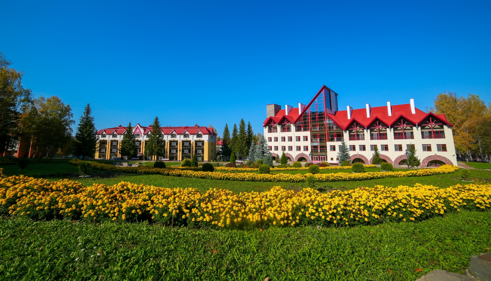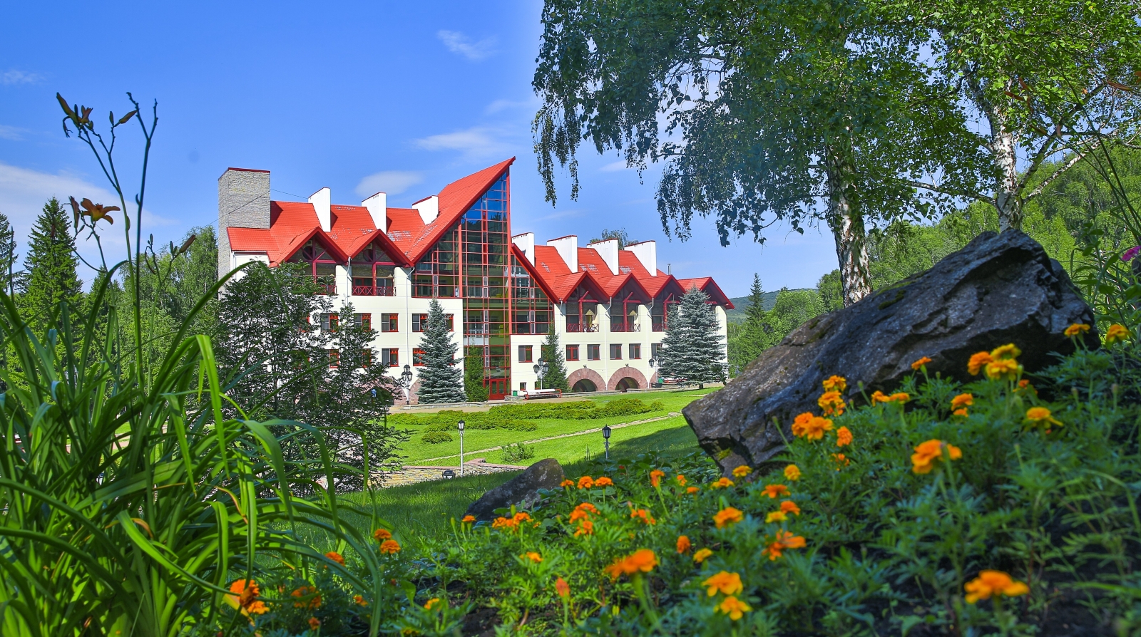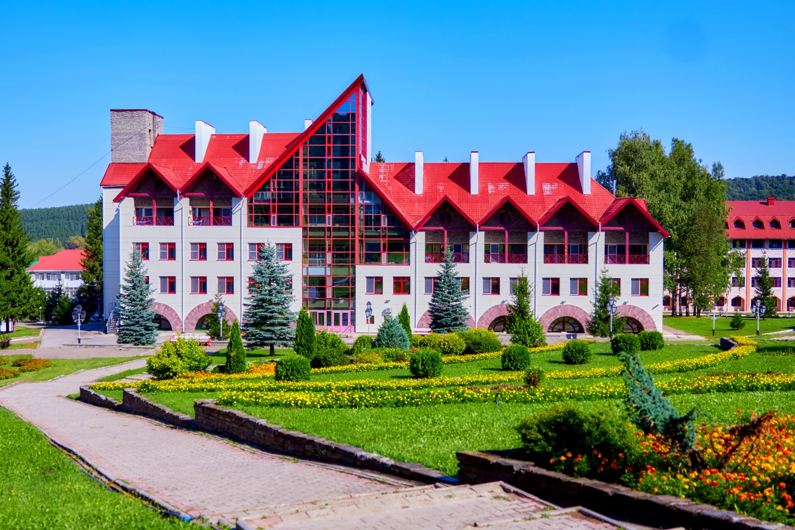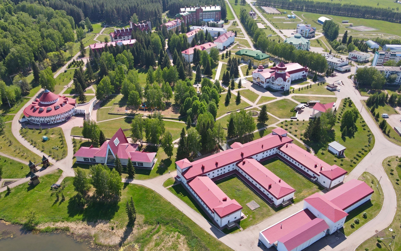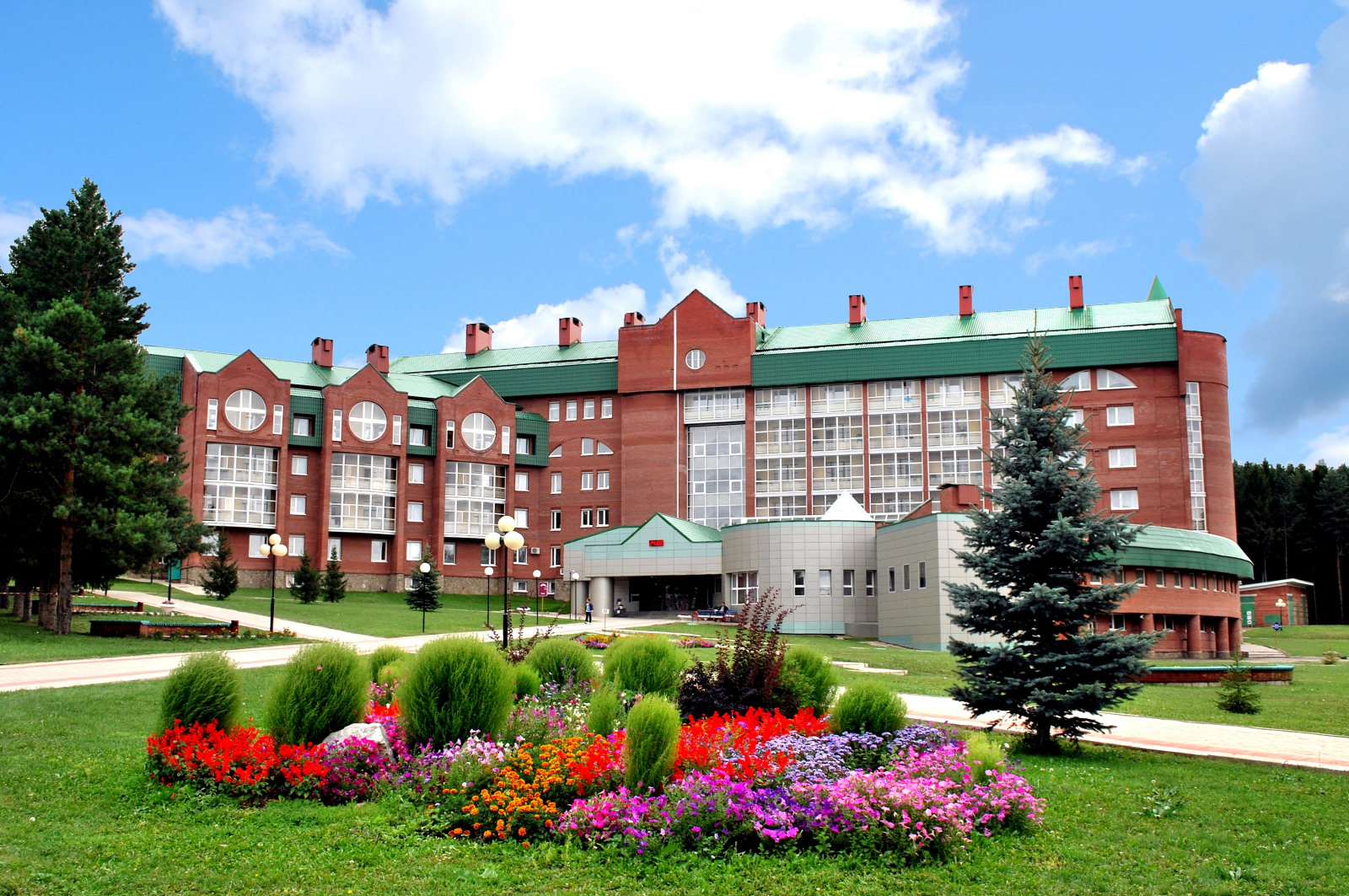 Санаторий «Красноусольск» расположен в Башкирии, в 130 км от г. Уфы. Это крупный курорт регионального значения, известный далеко за своими пределами. Редкое сочетание целебных природных факторов делают его уникальным. Санаторий находится почти в центре республики и имеет удобную транспортную развязку. До ближайшего крупного города – Стерлитамака – порядка 70 км. В 7 км находится село Красноусольский с необходимой поселковой инфраструктурой. Сам санаторий стоит в пос. Курорта. Здесь есть своя автостанция, магазины, аптека, мечеть и православный монастырь. Территория курорта составляет 110 га и представляет собой целый городок, способный обеспечить своим гостям полноценный комфортный отдых, досуг и лечение. Корпуса, разные по архитектуре, органично перемежаются с лесными массивами и открытым пространством, ровными газонами и цветочными клумбами, фонтаном и зонами отдыха. Живописный вид открывается на протекающую рядом р. Усолка, незамерзающую зимой из-за бьющих источников, и Утиное озеро. Для размещения предусмотрено 10 корпусов разной вместимости. Корпуса 1,4 – 4-этажные, 2,3 – 3-этажные, 5,6 – 5-этажные, 7ой – 6-этажный, 8,9 – 2-этажные и 10ый – 1-этажный. Все они являются отдельно стоящими, лишь корпус 3 соединен теплым переходом с лечебно-физкультурным комплексом. Лифтом оснащены корпуса 6, 7. В корпусе 2 расположена часть лечебных кабинетов. Корпуса 1,3,4,9 оборудованы массажными кабинетами и кабинетом врача. Оснащение номеров зависит от категории. Но даже эконом-класс предусматривает необходимый набор удобств. В 10 корпусе на этаже установлены электрочайник, холодильник, микроволновая печь, гладильная доска, утюг, телефон. Wi-Fi доступен в холлах корпусов, на территории, в большей части номеров. Питание организовано в 7 залах, 2 из них – в столовой «Ашхана», по 2 – в корпусах 5,7, один – в корпусе 6. В корпусах и зале №1 столовой питание сервируется по типу «шведского стола». Зал №2 «Ашханы» работает по заказному меню. Регулярно проходят дни национальной кухни. Также на территории действует ресторан «Табын», кафе «Кугуш», летнее кафе на берегу Утиного озера, фитобары - в зданиях водо- и грязелечебниц. В центре территории стоит Центр досуга. Здесь проходят основные развлекательные мероприятия. К услугам гостей – лазерный тир, боулинг, караоке, бильярд, залы компьютерных и настольных игр, музей истории санатория, библиотека, 3 конференц-зала, смотровая площадка. Для занятий спортом, кроме тренажерных и спортзалов, построены площадки для мини-гольфа, теннисный корт, крытый круглогодичный каток и велотрасса. Современный SPA-комплекс оборудован в центре «Самрау», стоящем на въезде в санаторий. В распоряжении отдыхающих банный комплекс разных народов мира. В дополнение к ним - бассейн с каскадным душем в лечебно-физкультурном комплексе и центр косметологии «Эстет» в 7 корпусе. Много внимания уделяется детскому отдыху. Созданы все условия для комфортного проживания юных гостей. Кроме традиционной детской комнаты и игровой площадки, с детьми ежедневно занимаются аниматоры. Основные лечебные факторы - минеральная вода из собственных источников для питья и наружного применения, местная иловая грязь и благоприятный климат региона. Они определяют профиль лечения. Санаторий располагает высокотехнологичной медицинской базой, в том числе диагностически